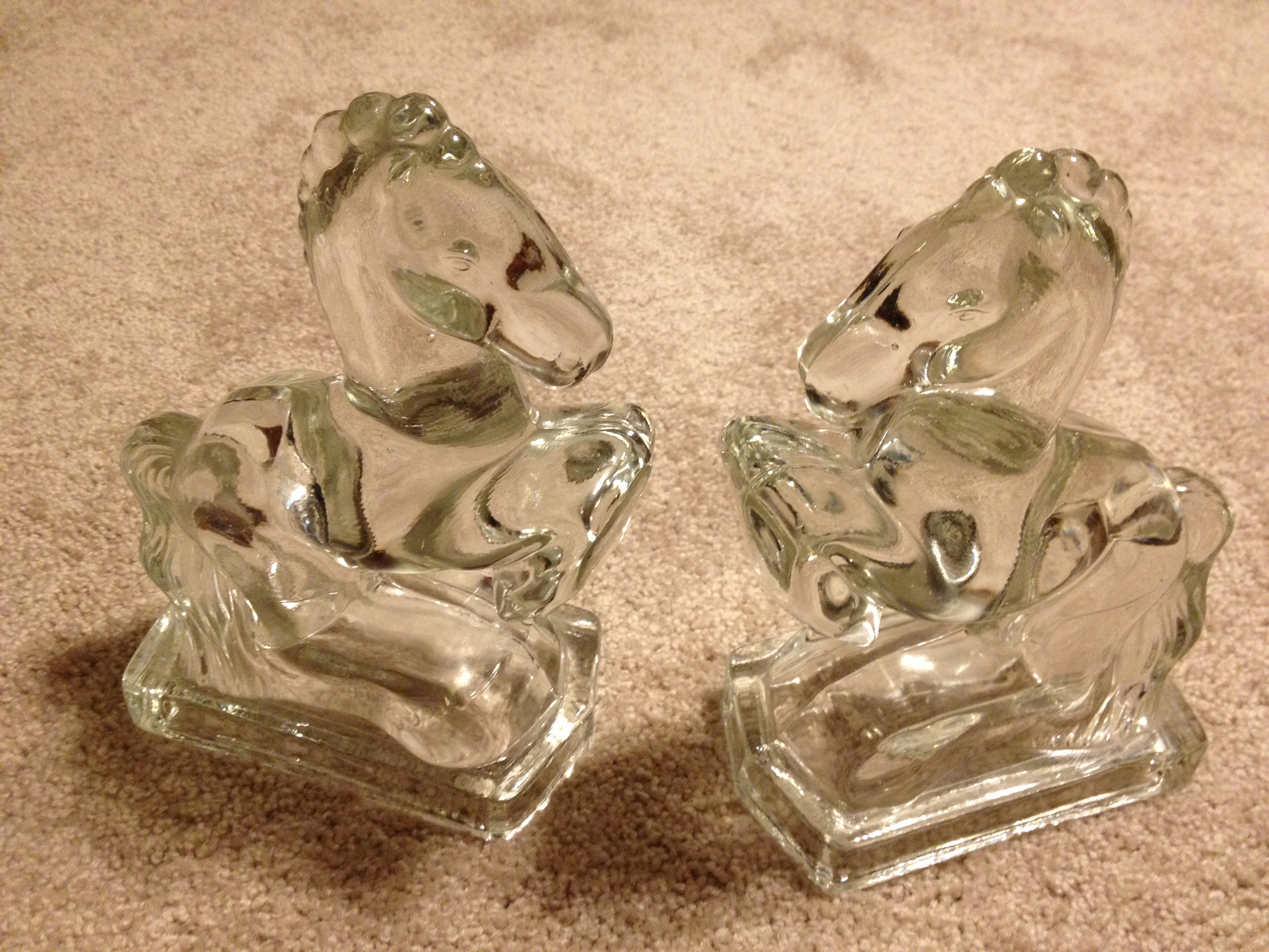 Today (6/27/12) I went to a senior community where I’ve been ministering regularly. As I approached the elevator, I noticed a cart sitting right by the door. No one was there but a silver object attracted my attention as it was reminiscent of the Ark of the Covenant. While I was studying it, a lady whom I had never met before, walked up to me and asked me if I wanted the pretty object. These were things that had belonged to her recently deceased husband and she was giving them away. I thanked her and then she pulled out something else. I gasped! It was a glass horse. She pulled out another one. She asked me if I wanted this pair of beautiful horse sculptures, too. Oh, yes! I thanked her excitedly and told her how I knew this was a special gift from the LORD to me in light of all He’s been showing me. Can you believe a perfect stranger giving me such a perfect gift?! It was definitely a God-thing! The LORD is so good to me!