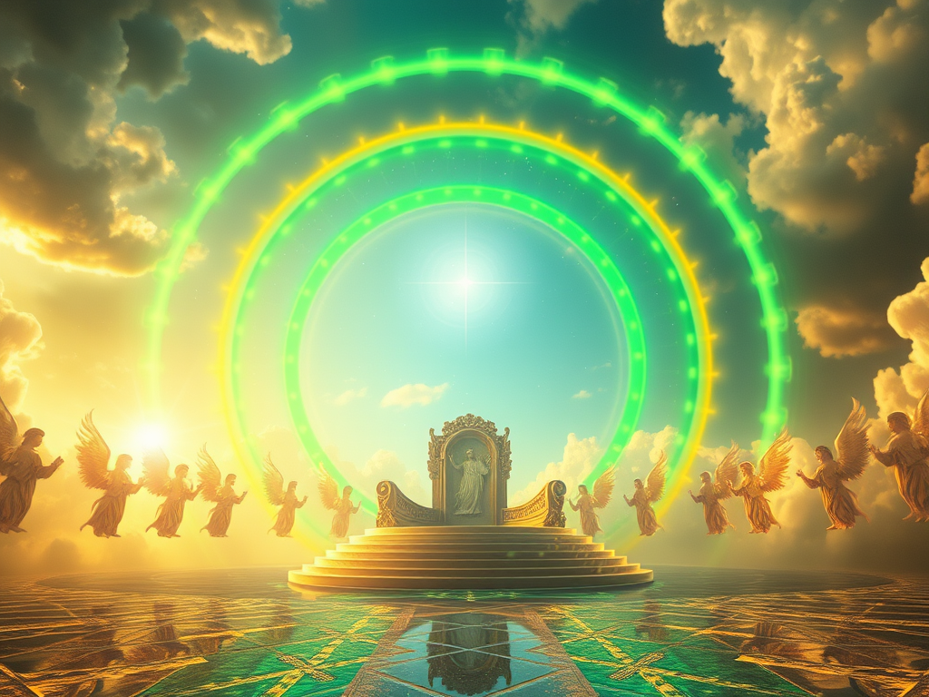 A circular green appearance was seen round the throne, which perhaps may be described as a green halo. – Pulpit Commentary